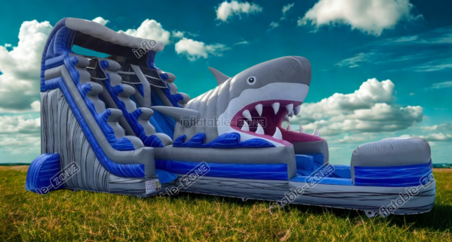 Experience the thrill of riding the waves in your own backyard with our incredible 18ft Shark dual lane water slide! Shaped like a towering wave sliding through a giant shark mouth, it's the ultimate summer adventure for endless splashes and smiles. Above price is for a 5 hour rental.