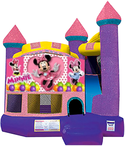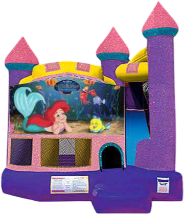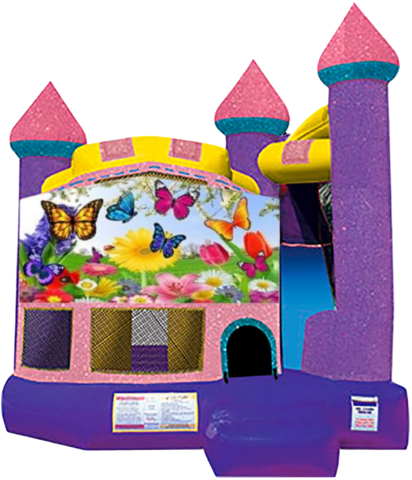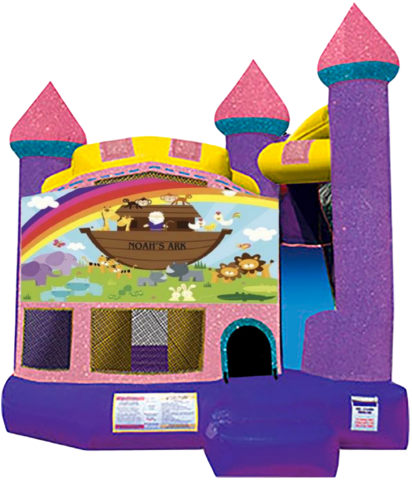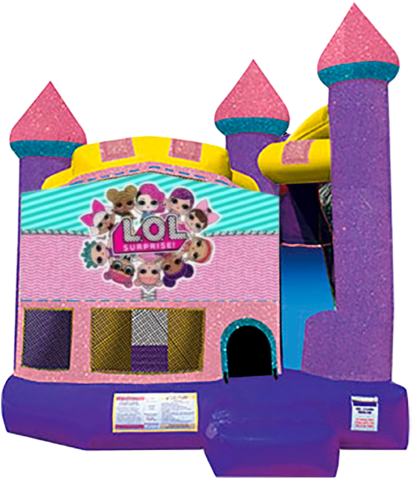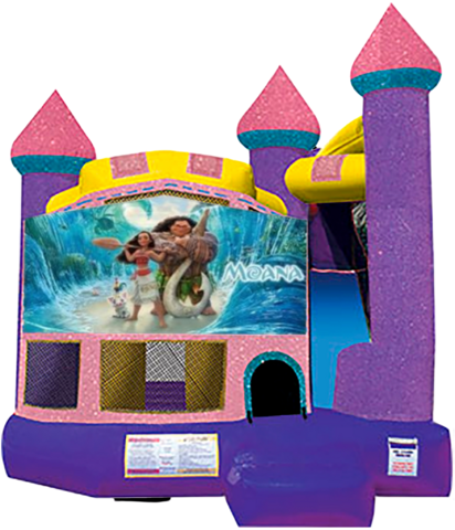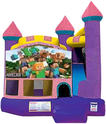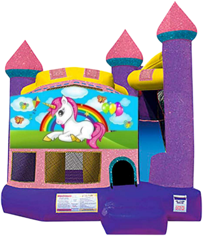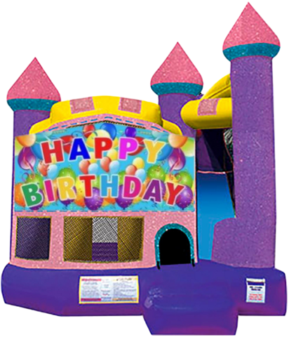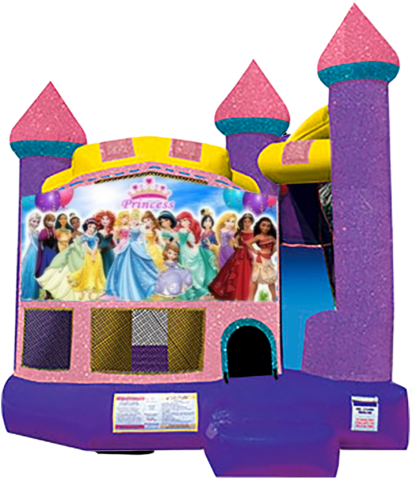This Dazzling Castle party favorite packs the full combo experience in an economical and size conscious format! This combo comes with a generous bounce area, slide, and a basketball hoop (balls not included). And for just $20 you can add a banner to match the theme of your party. Scroll down to find your favorite.