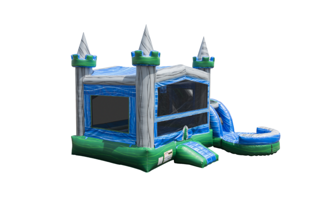 This Emerald Castle Bouncer party favorite packs the full combo experience. This combo comes with a generous bounce area, basketball hoop and slide that ends in a splash pool.